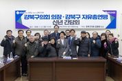 뉴한국방송뉴스통신사 신유철기자 기자 | 강북구의회 김명희 의장(번1·2동, 수유2·3동)은 지난 1월27일, 강북구의회 3층 의원회의실에서 ‘강북구의회 의장·강북구 자유총연맹 신년간담회’를 개최하고, 새해 인사와 함께 단체 운영 현황과 지역 현안에 대한 의견을 청취했다. 이번 간담회는 자유총연맹 임원 및 각 동 임원들이 한자리에 모여 지역사회 발전을 위한 소통과 협력을 다지기 위해 마련됐다. 한국자유총연맹은 자유민주주의의 가치 수호와 국민 통합을 목적으로 설립된 단체로, 전국적인 조직을 기반으로 안보 의식 함양과 봉사활동, 지역 공동체 활성화 등 다양한 공익 활동을 지속적으로 펼쳐오고 있다. 이날 간담회에는 강경덕 지회장을 비롯한 강북구지회 임원 및 각 동 임원 등 총 17명이 참석해 단체 활동 현황과 지역 내 주요 과제에 대해 의견을 나눴다. 간담회에서는 강북구지회 사무실 리모델링 이후 발생한 빗물 누수 문제, 사업 추진을 위한 예산 증액 필요성 등 자유총연맹 관련 건의사항이 제시됐으며, 이와 함께 각 동 임원들이 현장에서 체감하고 있는 강북 관내 실생활 민원에 대한 다양한 의견도 함께 논의됐다. 김명희 의장은 제기된 건