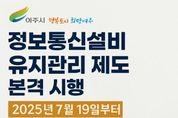 뉴한국방송뉴스통신사 신유철기자 기자 | 여주시는 지난 7월 19일부터 ‘정보통신설비 유지보수 ‧ 관리제도’를 본격 시행하고있다고 밝혔다. 이번 제도는 일정 규모 이상의 건축물에서 통신설비가 노후되거나 방치돼 시민 불편이 발생하는 사례를 예방하기 위해 마련된 것으로, 통신설비의 체계적 관리와 안전 강화를 목표로 하고 있다. 새 제도에 따라 연면적 5천미터 이상 건축물은 전문 자격을 갖춘 정보통신기술자를 유지보수 ‧ 관리자로 선임하거나 전문업체에 위탁해야 하며, 관리자는 연 2회 이상 정기점검과 연 1회 성능검사를 의무적으로 실시해야 한다. 점검 결과는 표준 서식에 따라 5년간 보관해야 하며, 여주시의 요청 시 제출해야 한다. 이를 이행하지 않을 경우 최대 300만원의 과태료가 부과될 수 있다. 단계적 유예기간 부여... 기존 건축물도 순차 적용 기존 건축물의 경우 제도 시행에 따른 부담을 최소화하기 위해 규모별 유예기간이 부여됐다. 현재(2025년 10월기준) 연면적 3만㎡이상 건축물은 유지보수 관리자를 선임하고 점검계획을 수립하여야 한다. 이어 연면적 1만㎡이상 ~ 3만㎡미만 건축물은
