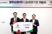 뉴한국방송뉴스통신사 김성의 기자 | 광주광역시는 광주순환㈜이 ‘나눔명문기업’에 동참, 27일 회사 회의실에서 가입식을 개최했다고 밝혔다. 광주순환은 22번째 가입한 지역 기업이다. ‘나눔명문기업’은 사회복지공동모금회 사랑의열매에 1억원 이상의 기부금을 5년 이내 기부하기로 약정하고, 가입 때 2000만원 이상의 기부금을 기부한 법인에게 예우를 제공하는 제도다. 이번 가입식은 기업이 지역사회를 위한 나눔활동을 지속적으로 실천하고 있음을 기념하고 격려하기 위해 마련됐다. 광주순환은 다년간 지역사회공헌 활동을 꾸준히 이어오며 기업의 사회적 책임경영을 실천해왔다. 이번 가입으로 광주순환은 광주 제22호 나눔명문기업에 이름을 올렸다. 이날 행사에는 강기정 시장을 비롯해 구제길 광주사회복지공동모금회장, 이영훈 광주순환 대표이사 등이 참석해 나눔명문기업 인증패를 전달하고 향후 협력 방안 등을 논의했다. 강기정 시장은 “지역 기업의 따뜻한 나눔 실천이 모여 광주의 복지 안전망을 더욱 촘촘히 만드는 힘이 된다”며 “광주시도 나눔문화 확산을 위해 최선을 다하겠다”고 말했다. 구제길 광주사회복