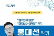 뉴한국방송뉴스통신사 김성의 기자 | 광주광역시는 ‘민주주의 주간’ 마지막 날인 12일 오후 2시 일가정양립본부 다목적실에서 홍대선 인문작가 초청 특별강연을 연다. 홍대선 작가는 ‘한국인의 투쟁법과 민주주의’를 주제로 한국인이 부당함·억압·위기에 맞서 민주주의를 지켜온 역사를 조명하고, 시민성이 나아가야 할 방향을 모색한다. 시민 누구나 예약 없이 무료로 강연에 참여할 수 있다. 홍대선 작가는 ‘한국인의 탄생’, ‘어떻게 휘둘리지 않는 개인이 되는가’ 등 저서를 통해 한국 사회의 저항·연대의 전통과 시민의 역할을 조명했다. 풍부한 인문학 지식과 재치있는 입담으로 라디오 등에서도 활약하고 있다. 광주시는 시민이 12·3 불법계엄에 단호하게 대응하며 민주주의를 지켜낸 역사적 경험을 기념하기 위해 12월 1일부터 12일까지를 ‘민주주의 주간’으로 정해 운영하고 있다. 홍 작가 특강을 비롯해 시정보도 사진전, 5·18기록관 개관 10주년 기념 전시회, 학술대회 등 다양한 프로그램을 마련했다. 강은순 민주보훈과장은 “지난해 불법계엄을 계기로 민주주의의 본질과 시민의 역할에 대한 사회적 관심이 높아짐에 따라 이