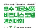 뉴한국방송뉴스통신사 신유철기자 기자 | 충남도 농업기술원은 오는 11월 7일 농가공경영체와 전문가, 일반 소비자 등 300여 명이 참석한 가운데 ‘2025년 우수 가공상품 비즈니스 모델 경진대회’를 개최한다고 30일 밝혔다. 이번 대회는 지역 농업인이 직접 개발·생산한 농산물 가공상품의 경쟁력과 사업성을 평가하고, 소비자와의 소통을 통해 충남 농산물의 새로운 시장가치를 확산하기 위해 마련했다. 행사장에서는 15개 시군을 대표하는 농업경영체 30여 곳이 참여해 지역 농산물을 활용한 다양한 가공상품을 선보인다. 도 농업기술원은 창의성·브랜드 이미지·시장성 등 3개 항목에서 전문가 심사를 거쳐 도지사상 4점을 수여할 예정이다. 일반 소비자가 직접 참여하는 ‘소비자 반응조사’도 함께 진행된다. 조사는 소비자들이 각 제품의 맛·당도·식감 등을 평가하고, 가장 선호하는 상품에 투표하는 방식인 만큼 단순한 품평을 넘어 소비자 중심의 제품 개선 방향을 제시하는 현장형 데이터로 활용할 계획이다. 소비자 참여 확대를 위해 ‘지역농산물 활용 바른 식생활 체험 프로그램’도 운영한다.
