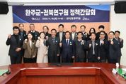 뉴한국방송뉴스통신사 김성의 기자 | 완주군과 전북 싱크탱크인 전북연구원이 18일 오후 완주군청에서 유 군수와 장 원장대행을 포함한 주요 관계자 20여 명이 참석한 가운데 ‘완주군-전북연구원 정책간담회’를 열었다. 이번 간담회는 완주군의 주요 현안사업을 전북연구원과 함께 논의하며 최적의 대응 방안을 모색하기 위해 마련됐다. 이날 주요 안건은 ▲피지컬AI 산업 육성 및 활성화 전략 ▲피지컬 AI 및 2차 공공기관 이전 부지 입지 검토 ▲경관조성을 통한 관광·축제 활성화 방안 ▲완주군 외국인 정책 운영 방향 등으로 양 기관은 안건별 주요 쟁점, 대응 방향 및 계획 등에 대해 심도 있는 토론을 진행했다. 유희태 군수는 “이번 간담회는 군과 연구원의 상시 협력체계를 더욱 공고히 할 수 있는 기회”라며, “피지컬 AI와 관광·축제 활성화 등 군정 주요 현안 대응과 신성장 동력 발굴 등을 위해 앞으로도 전북연구원과 긴밀히 소통하며 협력해 나가겠다”고 말했다. 장성화 대행은 “완주군은 전북 신산업 발전을 선도하는 전진기지”라고 말하며, “완주군이 전북 경제의 중심도시로 도약할 수 있도록 적극적으로 지원하고 기관