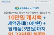 뉴한국방송뉴스통신사 신유철기자 기자 | 창원특례시는 신한카드와 손잡고 고향사랑기부제 확산을 위해 최대 10만 원을 돌려주는 제휴 이벤트를 11월 한 달간 진행한다고 30일 밝혔다. 최근 6개월 이내 신한 개인신용카드 이용과 탈회 이력이 없는 개인이 카드사 이벤트페이지에 응모한 후 이벤트 대상 카드로 창원에 10만 원 이상 고향사랑기부하면 기본 혜택에 더해 10만 원이 캐시백된다. 이에 따라, 신한카드 이벤트 응모 대상자가 창원시에 10만 원을 기부할 경우 받을 수 있는 혜택은 △세액공제(10만 원까지 전액, 초과분 16.5%), △답례품(기부금의 30%), △캐시백(10만 원)을 더해 총 23만 원이 된다. 기부방법은 고향사랑e음 홈페이지, 농협·국민·신한·기업·하나은행 앱에서 편리하게 기부하거나 전국 NH농협 방문을 통해 가능하다. 이벤트와 관련한 자세한 내용은 창원시청 누리집 시정소식란에서 확인할 수 있다. 김창우 세정과장은 “창원과 고향사랑기부제를 대규모로 널리 홍보할 수 있어 기쁘다”며 “전국의 창원을 생각해주는 많은 분들이 혜택을 받을 수 있기를 바란다”고 말했다. [뉴스출