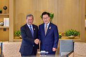 뉴한국방송뉴스통신사 신유철기자 기자 | 이재명 대통령은 27일 말레이시아 '안와르 이브라힘(Anwar Ibrahim)' 말레이시아 총리와 첫 정상회담을 가졌다. 이 대통령은 취임 후 첫 아세안 국가 방문지로 올해 아세안 의장국이자 오랜 우호국인 말레이시아를 방문해 매우 뜻깊다고 말했고, 안와르 총리는 이 대통령이 APEC 정상회의 준비로 분주한 가운데 말레이시아를 방문한 데 대해 사의를 표했다. 안와르 총리는 이어 이 대통령의 이번 말레이시아 방문이 한-말레이시아 관계와 한-아세안 관계가 한 차원 도약하는 중요한 동력을 제공할 것이라고 평가했다. 양 정상은 이번 정상회담을 통해 한국과 말레이시아간 FTA 협상이 타결된 것을 환영하고, 이를 기반으로 역내 핵심 경제협력국으로 양국 간 교역과 투자가 보다 확대됨은 물론, 디지털, AI 등 전략산업 분야에서 협력이 보다 가속화될 것으로 기대했다. 안와르 총리는 “말레이시아의 국방 역량 강화에 있어 한국은 신뢰할 수 있는중요한 파트너”라면서 금번 방산 MOU 체결을 계기로 한국과의 방산 분야 협력 강화를 기대한다고 밝혔다. 양 정상은 양국이 방