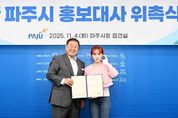 뉴한국방송뉴스통신사 신유철기자 기자 | 파주시는 11월 4일, 가수 김다현을 파주시 홍보대사로 추가 위촉했다고 밝혔다. 이번 위촉식은 김경일 파주시장과 김다현 씨의 가족들이 참석한 가운데 진행됐다. 김다현 씨는 앞으로 2년간 파주시의 주요 정책과 문화·관광을 홍보하고, 지역 행사 등에 적극 참여할 예정이다. 현재 한국과 일본을 오가며 활약 중인 김다현 씨는 ‘청학동 훈장’으로 알려진 김봉곤 훈장의 막내딸로, 2019년 곡 ‘꽃처녀’로 데뷔한 트로트 가수이자 국악인이다. 이후 엠비엔(MBN) 경연 프로그램 ‘보이스트롯’준우승, 티브이(TV)조선 ‘내일은 미스트롯2’3위, 엠비엔(MBN) ‘현역가왕’3위 등을 차지하며, 다양한 무대를 통해 국악적 깊이와 대중성을 함께 갖춘 가창력으로 주목받고 있다. 김경일 파주시장은 “트로트 요정 김다현 씨가 파주시의 젊고 활기찬 이미지를 알리는 데 큰 힘이 될 것으로 기대한다”라고 말했다. 앞서 파주시는 지난 17일 밴드 ‘두 번째 달’, 유튜브 창작자 ‘젼언니’, 가수 ‘김설’을 홍보대사로 위촉한 바 있다. 이번 김다현 씨의 합류로 파주시 홍보대사단은 한층 풍성해져