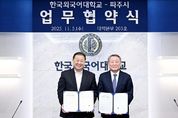 뉴한국방송뉴스통신사 신유철기자 기자 | 파주시는 지난 5일, 한국외국어대학교 대학본부에서 한국외국어대학교와 ‘일생일대 프로젝트’를 기반으로 한 ‘평생교육 진흥 업무협약’을 체결했다고 밝혔다. 이번 협약은 파주시의 대표적인 대학 연계 평생학습 사업인 ‘일생일대 프로젝트’를 한국외대와 함께 2026년부터 공동 기획·운영하기 위해 추진된 것으로, 세계 언어교육과 문화 이해 역량을 강화해 시민의 국제적 소통 능력과 평생학습 기회를 넓혀 나갈 계획이다. ‘일생일대 프로젝트’는 읍면동 평생학습센터와 대학을 1대1로 연결해 시민이 생활권 안에서 손쉽게 대학 교육을 접할 수 있도록 한 경기도 최초의 평생학습 모델이다. 이날 협약식에는 김경일 파주시장, 김태훈 문화교육국장, 최희진 평생교육과장 등 파주시 관계자와 박정운 한국외대 총장, 대외협력처장, 사업지원처장, 서울평생교육원장 등이 참석했다. 양 기관은 상호 협력을 통해 시민 맞춤형 교육 프로그램 개발 및 운영에 힘쓸 것을 약속했다. 김경일 파주시장은 “한국외대와의 협약은 파주시 평생학습의 지평을 국제적 수준으로 넓히는 중요한 계기가 될 것”이라며 “외국어와 세