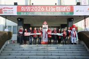 뉴한국방송뉴스통신사 신유철기자 기자 | 지난 12일 여주시와 경기 사회복지공동모금회는 연말연시 나눔문화 확산을 위한'희망2026 나눔캠페인'의 시작을 알리는 사랑의 온도탑 제막식을 개최했다. 이번 캠페인의 슬로건은 “행복을 더하는 기부, 기부로 바꾸는 여주”로 이충우 여주시장, 박두형 여주시의회 의장 및 시의원, 김효진 경기 사회복지공동모금회 사무처장 등 10여명이 참석하여 제막식과 슬로건 피켓팅을 통해 홍보활동을 진행했다. '희망2026 나눔캠페인'은 2025년 12월 1일부터 2026년 1월 31일까지 62일간 여주시 지정기탁 모금액 4억원을 목표로 각 읍면동 및 본청에서 모금을 접수하며, 목표액의 1퍼센트인 4백만원의 성금이 모금될 때마다 사랑의 온도탑의 온도가 1℃씩 올라간다. 집중모금기간동안 모금된 성금 등은 사회복지공동모금회를 통해 여주시 지정기탁금 계좌로 적립되어 관내 취약계층 및 사회복지시설 등을 위한 복지사업의 재원으로 소중히 사용될 예정이며, 많은 시민들의 관심과 참여를 촉구하는 뜻깊은 자리였다. [뉴스출처 : 경기도 여주시]