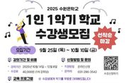 뉴한국방송뉴스통신사 신유철기자 기자 | 수원문화재단은 남녀노소 누구나 악기를 배우고 즐길 수 있는 ‘수원은학교 '1인 1악기 학교'’의 수강생을 10월 10일까지 선착순으로 모집한다. ‘수원은학교 '1인 1악기 학교'’는 문화도시 조성사업의 일환으로, 시민의 문화예술 향유 기회를 확대하여 생활문화를 활성화하기 위해 추진하는 사업이다. 이번 강좌는 △대금(초급, 중급) △소금(초급, 중급) △오카리나 △칼림바 △우쿨렐레 △바이올린 등 총 8개 강좌로 구성됐으며, 공공한옥, 어린이도서관, 공연장 등 수원 전역의 다양한 문화예술 시설에서 운영된다. 수강신청은 온라인으로 가능하며, 수강료는 1개 강좌당 40,000원으로 악기연주와 문화예술에 관심이 있는 시민 누구나 신청할 수 있다. 특히 참여자를 대상으로 악기를 무료로 대여해주어, 악기를 보유하지 않은 시민도 부담 없이 강좌를 수강할 수 있다. 수원문화재단 관계자는 “평소 관심이 있던 악기를 직접 배우고 연주해 보며 일상에 예술적 감성을 더할 수 있는 계기가 되기를 기대한다”며, “악기를 처음 접하는 분들도 쉽게 참여할 수 있도록 초급과정과 악기 대여 서