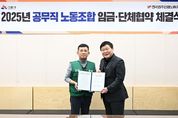 뉴한국방송뉴스통신사 신유철기자 기자 | 시흥시는 지난 11월 26일 시청 다슬방에서 교섭대표 노동조합인 전국민주연합노동조합 시흥지부와 2025년도 공무직 임금ㆍ단체협약을 체결했다. 올해 교섭은 지난 9월 10일 상견례를 시작으로 약 2개월간 총 7차례의 실무교섭을 통해 진행됐으며, 상호 입장을 조율하기 위한 세부 논의를 거쳐 임금 협약과 단체협약 내용이 확정됐다. 임금 및 단체협약에는 ▲2024년 임금 총액 대비 3% 인상 ▲민원 업무 수당 및 위험 근무수당 신설 ▲임금 테이블 통합(사무보조 직군과 영양사ㆍ의료급여 등 전문ㆍ단순 노무 직군을 ‘노무원’으로 통합) ▲경력 인정 기준 신설 ▲휴직 사유 신설 등 다양한 개선 사항이 포함됐다. 이번 합의는 공무직 근로자의 복리 증진과 근무 여건 향상을 위해 노사 양측이 지속적으로 의견을 조율하며 마련한 것으로, 안정적이고 효율적인 근무 환경을 만드는 데 중요한 기반이 될 것으로 기대된다. 김기범 전국민주연합노동조합 시흥지부장은 “같은 시흥시 직원으로서 상생의 자세로 한 방향을 바라볼 수 있도록 협력해 준 시흥시에 감사드린다”라며, “이번 협약을 통해 조합원