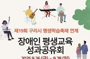 뉴한국방송뉴스통신사 신유철기자 기자 | 구리시는 장애인 평생학습 도시 지정 3주년을 맞아, 장애인의 학습 성과를 공유하고 시민을 대상으로 장애 인식 개선을 위한 공감 프로그램을 제공하기 위해 오는 9월 26일(금)부터 28일(일)까지 구리한강시민공원에서'장애인 평생교육 성과공유회'를 개최한다고 밝혔다. 이번 행사는 '제19회 구리시 평생학습 축제'와 연계해 진행된다. 성과공유회에서는 장애인과 평생학습 관계자들이 한 해 동안 갈고닦은 학습 결과물을 시민들과 나누며 화합의 장을 마련한다. 구리시 관내 6개 장애인 기관·단체가 참여해 ▲발달장애인 미술 작품 전시 ▲슐런 체험(네덜란드 전통 보드게임, 나무 원판을 미끄러뜨려 점수를 내는 놀이) 및 점자 홍보 ▲까롬 경기(인도 전통 보드게임, 손가락으로 작은 원판을 튕겨 포켓에 넣는 놀이) 체험 ▲장애 인식 개선 캠페인 등을 운영할 예정이다. 아울러, 장애인 평생학습 도시 지정 3주년을 기념하고 장애인 인식 개선을 위해 발달장애인으로 구성된 관악밴드 '드림위드 앙상블'팀이 무대에 올라 아름다운 하모니를 선사한다. 구리시는 장애인의 평생학습 참여기회를 넓히고, 지역 기관과