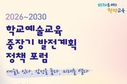 뉴한국방송뉴스통신사 신유철기자 기자 | 서울특별시교육청은 ‘예술로 잇다, 감성을 품다, 미래를 열다’를 주제로 10월 30일, 제2서울창의예술교육센터에서 『2026~2030 학교예술교육 중장기 발전계획 비전 선포식』을 개최한다. 선포식은 ‘AI 아트랩 서울’건립을 통해 미래형 예술교육의 새 장을 여는 서울시교육청의 비전을 공유하는 자리로, 예술교육 분야 교수 및 전문가, 학생, 학부모, 초‧중‧고‧특수 교원 등 200여 명이 참석할 예정이다. 서울시교육청 2026~2030 학교예술교육 중장기 발전계획은 ‘예술이 일상이 되는 학교’를 비전으로 제시하고, △'미래역량 기반 학교예술교육' △'마음을 채우는 서울예술교육' △'지역과 상생하는 예술생태계'의 세 가지 추진 전략을 통해 서울 학교예술교육의 발전 방향을 구체화했다. 이번 계획은 예술이 학생의 마음 성장을 돕는 교육적 힘이 되도록, 음악·미술·연극·영화·뮤지컬 등 다양한 예술교육 경험을 통해 정서적으로 어려움을 겪는 학생도 예술로 마음을 채우고 성장할 수 있도록 지원하는데 중점을 두고 있다. 나아가 모든 학생이 예술을 누리며 일상에서 직접 예술을 경험할 수