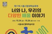 뉴한국방송뉴스통신사 신유철기자 기자 | 시흥시는 시민이 함께 만들고, 시민이 주인공인 ‘제17회 시흥시평생학습축제’를 오는 10월 24일부터 26일까지 3일간 시흥ABC행복학습타운에서 개최한다. 지난 2006년에 처음 시작된 시흥시평생학습축제는 배움을 통해 성장한 시민들이 학습의 즐거움과 성과를 함께 나누고 축하하는 한마당으로, 올해 17번째를 맞이한다. 이번 축제는 ‘너와 나, 우리의 다양한 배움 이야기’라는 주제로 초청 강연, 체험, 전시, 공연, 포럼 등 시민 누구나 참여할 수 있는 다채로운 프로그램이 마련됐다. 10월 24일 오전 10시에는 TV예능 프로그램인 ‘유 퀴즈 온 더 블럭’에 출연해 학교다운 학교의 새로운 모델을 제시한 이명학 교수(前 중동고 교장)의 초청 강연이 시흥ABC행복학습타운 ABC홀에서 열린다. 이어 오후 2시에는 ‘느린 걸음, 다양한 길’을 주제로 생애 전반의 슬로우 러너를 이해하는 학술포럼이 지혜관 2층에서 진행된다. 10월 25일과 26일에는 28개의 체험 프로그램과 20개 팀의 공연, 전시와 먹거리 부스가 운영되며, 26일 오전 10시 30분에는 의사에서 웹툰 작