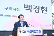 뉴한국방송뉴스통신사 신유철기자 기자 | 구리시는 지난 9월 25일 구리한강시민공원에서 약 2,000명의 시민이 함께한 가운데 '제40회 구리 시민의 날' 행사를 성황리에 개최했다고 밝혔다. 행사는 풍물늘락의 사물놀이 공연을 시작으로 8개 동 주민의 동별 입장식, 백경현 구리시장의 개회식 선언, 탄성은 구리문화원장의 시민헌장 낭독, 장수용 대한노인회 구리시지회장의 만세삼창, 시가 제창, 폐식 선언 순으로 이어졌다. 이어 열린 시상식에서는 각계각층에서 구리시 발전에 이바지한 시민 84명이 도지사·시장·의장·국회의원·교육장·경찰서장·소방서장 표창을 받았다. 2부 화합 행사에서는 인기 방송인 조영구 씨의 사회로 각 동장과 시민이 한 팀을 이뤄 펼친 동별 장기 자랑이 진행되어 큰 호응을 얻었으며, 가수 나상도와 박주희의 축하공연이 분위기를 한층 뜨겁게 달궜다. 백경현 구리시장은 “시민의 날은 바로 여러분이 주인공인 날”이라며, “뜻깊은 화합의 자리를 함께할 수 있어 매우 기쁘고, 앞으로도 더 행복한 구리시를 만들기 위해 시민 여러분의 변함없는 관심과 성원을 부탁드린다”라고 말했다. [뉴스출처 : 경기도