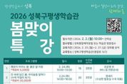 뉴한국방송뉴스통신사 신유철기자 기자 | 서울 성북구가 구민의 평생학습 참여를 확대하고 일상 속 평생학습 문화를 확산하기 위해 ‘2026 성북구평생학습관 봄맞이 특강’을 운영한다. 이번 특강은 문화예술, 인문교양, 생활경제 등 다양한 분야의 프로그램과 함께 환경·인권 등 사회적 가치를 주제로 한 시민교육 강좌로 구성됐다. 취미 중심 강좌를 넘어 구민이 일상에서 사회적 이슈를 이해하고 실천으로 이어갈 수 있도록 기획한 점이 특징이다. 문화예술 분야에서는 붉은 말 키링, 야생화 자수 카드 파우치, 아로마 캔들·왁스타블렛, 우리술을 말하다(수제 막걸리 빚기) 등 체험형 강좌를 운영한다. 인문교양 분야에서는 기상청 통보관에게 듣는 날씨와 기후 이야기, 맥주로 떠나는 세계 인문학 여행, 정원의 위로 등 생활과 연계된 주제를 다룬다. 시민교육 분야에서는 기후위기 시대 생태미식의 중요성, 친환경 라이프 실천(천연 주방세제 만들기) 강좌를 통해 기후위기 대응과 환경 보호에 대한 시민 인식을 높인다. ‘도슨트 특강: 고난을 이겨낸 예술가들’은 장애에 대한 이해와 공감을 확산하기 위한 장애인식개선교육으로 기획됐다. 이와 함께 절세