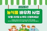 뉴한국방송뉴스통신사 신유철기자 기자 | 화성특례시는 저소득 취약계층의 영양 개선과 지역 농산물 소비 활성화를 위해 22일부터 ‘2026년 농식품 바우처 지원사업’ 신청을 받는다. 지원 대상은 생계급여(기준 중위소득 32% 이하) 수급자 중 임산부, 영유아, 아동, 청년을 포함한 가구로 1인 가구 월 4만 원, 4인 가구 월 10만 원 등 가구원 수에 따라 차등 지원된다. 지원 기간은 1월부터 12월까지 12개월이다. 지원 품목은 국산 채소, 과일, 육류, 잡곡, 두부류 등 신선 농산물을 구매할 수 있는 전자카드 형태로 제공되며, 농협 하나로마트, 편의점 등에서 사용할 수 있다. 지원 신청은 22일부터 주소지 관할 출장소 및 읍·면 행정복지센터를 방문하거나 온라인, ARS(☎1551-0857) 등을 통해 다양한 경로로 신청할 수 있으며, 2025년 사업 이용 가구로 지원 자격요건을 충족하는 경우 별도의 신청 절차 없이 자동 신청 처리될 예정이다. 기타 자세한 사항은 화성시청 농식품유통과 및 주소지 관할 출장소·읍·면 행정복지센터로 문의하면 된다. 신태식 농식품유통과장은 “이번 농식품 바
