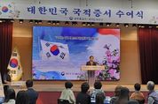 뉴한국방송뉴스통신사 신유철기자 기자 | 법무부 양주출입국·외국인사무소는 2025. 9. 25. 관내‘경기섬유지원센터 컨벤션홀’에서 양주시 등 경기 북부지역에 거주하고 있는 귀화자 및 국적회복자 57명을 대상으로 국적증서 수여식을 개최했다. 2018. 12. 20. 국적법 개정에 따라 법무부장관 앞에서 하던 국민선서와 국적증서 수여는 귀화자 및 국적회복자 거주 지역별 출입국·외국인관서에서 시행하고 있다 이번 국적증서 수여식은 대한민국 국민이 되어 첫 번째로 맞이하게 될 ‘추석’ 민속명절의 의미를 되새기고, 한국 사회에서 소속감과 자긍심을 가지고 살아갈 수 있도록 격려하고 축하하는 뜻깊은 장이 됐다. 이날 행사는 △대통령 축하영상 시청, △귀화자 등 국민선서 및 국적증서 수여, △기관장 축사, △ 국적취득 대표자의 소감 발표 순으로 진행됐다 김용규 소장은 축사를 통해 쉽지 않은 과정을 거쳐 대한민국 국민으로서 사회 구성원이 된 국적 취득자에게 권리뿐만 아니라 책임과 의무의 막중함을 강조하면서 다양한 문화적 배경과 경험을 바탕으로 서로 간에 이해와 화합을 증진하는데 노력해 주기를 당부했다 또
