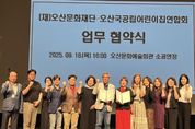 뉴한국방송뉴스통신사 신유철기자 기자 | 오산문화재단과 오산시국공립어린이집연합회는 지난 9월 18일 오산문화예술회관에서 지역 문화예술 활성화와 어린이 창의력 증진을 위한 업무협약을 체결했다. 이번 협약을 통해 양 기관은 ▲문화예술 프로그램 공동 개발 ▲어린이 대상 공연 및 체험 행사 확대 ▲지역 문화자원 연계 활동 등을 함께 추진할 예정이다. 협약식에 앞서 열린 차담회에서는 영·유아 대상 문화예술 프로그램의 방향성과 실현 가능성, 교직원 대상 혜택 제공 등 실질적인 협력 방안에 대해 심도 있는 논의가 이루어졌다. 신선교 오산문화재단 대표이사는 “이번 협약은 단순한 문서 체결을 넘어 실질적인 협력의 출발점”이라며 “아이들이 문화예술을 통해 감수성과 창의력을 키울 수 있도록 다양한 프로그램을 마련하겠다”고 말했다. 박은희 어린이집연합회 회장은 “보육 현장에 문화예술이 접목되어 아이들의 성장을 돕는 계기가 될 것”이라고 기대를 전했다. 현재 오산문화재단은 공연, 전시, 교육 등 다양한 프로그램으로 시민들의 문화 향유 기회를 확대하고 있으며, 오산시국공립어린이집연합회는 관내 국공립 어린이집의 협력과 발전을
