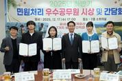 뉴한국방송뉴스통신사 김성의 기자 | 고창군이 지난 17일 2025년 하반기 민원·국민신문고 응대 우수공무원을 선정해 시상식과 간담회를 열었다. 민원처리 우수공무원은 각 분야별로 5명씩을 선정하여 표창을 수여했다. 먼저, 국민신문고 분야는 민원처리 건수, 담당자의 민원요지 파악, 성실한 답변 등을 평가했다. 서민지 주무관(도시디자인과), 김민경 주무관(환경위생과), 고민성 주무관(사회복지과), 박재규 주무관(종합민원과), 유혜령 주무관(문화예술과)이 선발됐다. ‘민원처리 마일리지 분야’는 처리기간이 2일 이상인 법정 민원에 대해서 단축 일수를 마일리지로 적립해 누적 점수가 높은 공무원을 선정했다. 남혜원 주무관(사회복지과), 이민해 주무관(환경위생과), 송서경 주무관(신활력경제정책관), 전필규 주무관(사회복지과), 배재영 주무관(해양수산과)이 선정됐다. 고창군수는 시상식 이후 민원 처리 우수공무원들의 애로사항과 건의 사항을 청취했다. 고창군수는 “국민신문고 민원 처리와 민원 실적은 단순한 처리 건수를 넘어 국민의 불편 해소와 ‘신뢰받는 행정 구현’에 중요한 지표다
