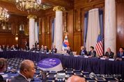 뉴한국방송뉴스통신사 신유철기자 기자 | 이재명 대통령은 25일(현지시간) 미국 워싱턴 D.C. 소재 호텔에서 개최된 '한미 비즈니스 라운드테이블-제조업 르네상스 파트너십'에 참석했다고 대통령실은 밝혔다. 이 대통령의 첫 미국 방문에 맞춰 개최된 이번 행사에는 한국경제인협회의 류진 회장을 비롯, 삼성전자 이재용 회장, SK 최태원 회장, 현대차 정의선 회장, LG 구광모 회장 등 주요 그룹 총수와 한화 김동관 부회장, HD 현대 정기선 부회장, 두산에너빌리티 박지원 회장, 셀트리온 서정진 회장 등 다양한 분야에서 미국과 협력 관계가 큰 16인의 국내기업인들이 참석했다. 미측에서는 엔비디아(NVIDIA) 젠슨 황 CEO, 칼라일(Carlyle) 그룹 데이비드 루벤스타인 공동회장을 포함해 보잉, 다나허, 어플라이드 머티리얼스 등 미국의 대표 기업인 21명이 참석했다. 이 대통령은 기조연설을 통해 "양국 기업인들이 한미 협력의 중추"라고 격려하며, "과거 미국이 한국의 초고속 성장에 기여했듯, 제조업 최고의 기술력을 보유한 대한민국이 미국 제조업 르네상스를 달성할 최적의 파트너임"을 강조했다. 또