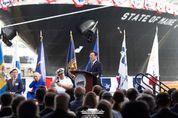 뉴한국방송뉴스통신사 신유철기자 기자 | 이재명 대통령은 26일(현지시간) 오후 미국 필라델피아에 위치한 한화 필리조선소를 방문해 미국 해양청이 발주한 국가안보다목적선 '스테이트 오브 메인'호의 명명식에 참석했다. 이날 명명식에는 한국 산업부·외교부 장관, 대통령실 안보·정책실장 및 미국 펜실베니아 주지사, 토드 영 상원의원 등이 함께 참석해 한-미 간 조선 협력에 대한 한-미 양국의 의지와 기대감을 드러냈다. 필라델피아 한화 필리조선소는 1801년 미국 해군 조선소로 설립돼 1997년 민영조선소로 출범한 이후, 지난해 12월 한화그룹이 인수한 곳이다. 이는 한국의 조선 기업이 미국 현지 조선소를 인수한 첫 번째 사례이다. 이날 명명되는 '스테이트 오브 메인'호는 한화 필리조선소로 새출발한 이후 처음으로 완성된 선박이다. 한화 필리조선소는 미국 해양청(MARAD)이 발주를 받아 1척당 3억 달러의 가격으로 총 5척의 국가안보다목적선을 건조 예정이다. 이 선박은 평시에는 해양대학교 사관생도들의 훈련용으로 활용되다가 비상시에는 재난 대응 및 구조 임무를 수행하게 되는 다목적선이다. 특히, 한국의 조선