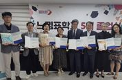 뉴한국방송뉴스통신사 신유철기자 기자 | 오산시는 지난 9월 16일 액티브시니어 양성과정 ‘느낌표학교 5기’ 졸업식을 개최했다고 밝혔다. 이번에 졸업한 느낌표학교 5기는 2024년 9월 입학 이후 1년간 생애설계, 원예, 진로컨설팅, 디지털리터리시 이론과 실습, 지속가능발전목표와 사회공헌활동 및 선택과목 2개 과정과 자서전 집필을 이수한 참여자에게 졸업장이 수여됐다. 졸업생 대표 류광현 씨는 “오산시에서 운영된 기존 평생학습과정과 차별화된 느낌표학교 5기 프로그램에 매우 만족하며, 앞으로 5기 졸업생들의 사회공헌활동을 기대해달라”고 소감을 전했다. 백년동행오산시민대학 느낌표학교는 2017년부터 오산시 거주 50~60세대를 대상으로 운영해온 액티브시니어 양성 교육 프로그램으로, 2021년에는 유네스코 지속가능발전교육(ESD) 공식 프로젝트로 인증받은 바 있다. 오산시는 2025년 하반기에도 다양한 평생교육 프로그램을 통해 시민들의 학습 욕구를 충족시키고, 평생학습도시로서의 위상을 더욱 강화해 나갈 계획이다. [뉴스출처 : 경기도 오산시]