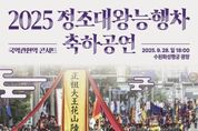 뉴한국방송뉴스통신사 신유철기자 기자 | ‘2025 정조대왕 능행차 축하공연’이 9월 28일 수원화성 행궁광장에서 열린다. 오후 2시 40분부터 7시까지 능행차 재현행렬(수원구간)의 마지막 장소인 수원화성 행궁광장에서 다채로운 프로그램이 펼쳐진다. 국제자매도시 공연단의 축하공연으로 시작해, 정조대왕 행차를 환영하는 축하행렬인 수원화성 퍼레이드, 정조대왕 능행차 재현·입궁 퍼포먼스, KBS 국악관현악단과 국악인 김영임, 유태평양의 협연 콘서트로 이어진다. 누구나 무료로 공연을 관람할 수 있다. 행사 당일 관람석 2000여 석을 운영한다. 수원시 관계자는 “성대한 정조대왕 능행차 행렬뿐 아니라 시민들이 함께 즐길 수 있는 다양한 프로그램을 마련했다”며 “1795년 을묘년 원행으로 되돌아간 듯한 특별한 경험을 하고, 다양한 볼거리를 즐기시길 바란다”고 말했다. 정조대왕 능행차 재현 행렬(수원 구간)은 9월 28일 오전 11시 30분 노송지대(1구간)에서 시작된다. 장안문(2-1구간)을 거쳐 행궁광장(2-2구간)에서 마무리된다. [뉴스출처 : 경기도 수원시]