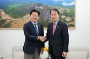 뉴한국방송뉴스통신사 신유철기자 기자 | 오영훈 제주특별자치도지사는 13일 도청 집무실에서 권오을 국가보훈부 장관과 면담을 갖고, 제주 4·3 관련 보훈 현안과 제주대학교병원 준보훈병원 지정 문제를 중심으로 지역 보훈정책 주요 사안을 논의했다. 이번 면담은 권 장관의 제주 방문에 따라 마련됐으며, 양측은 제주지역 보훈정책 발전을 위한 협력 방안에 대해 의견을 나눴다. 이 자리에서 오영훈 지사는 제주 4·3 당시 민간인 학살에 책임이 있는 박진경의 국가유공자 등록 취소 문제를 우선 거론하며, 보훈심사위원회의 조속한 결정을 촉구했다. 오 지사는 “국가보훈부가 박진경 국가유공자 등록 취소 방침을 밝힌 데 대해 유족과 도민의 기대가 매우 크다”며 “관련 법률에 의거해 심사위원회를 조속히 개최하고, 등록 취소가 명명백백하게 이뤄져야 한다”고 강조했다. 아울러 “4·3 추념식 전에 결정이 이뤄질 수 있도록 속도를 내달라는 것이 유족과 도민의 요구”라고 덧붙였다. 권오을 장관은 현재 진행 상황을 설명하며, 절차에 따라 처리하겠다는 입장을 밝혔다. 권 장관은 “국가유공자 예우에 관한 법률