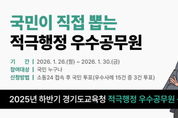 뉴한국방송뉴스통신사 신유철기자 기자 | 경기도교육청이 공공의 이익을 높인 적극행정 우수공무원 선정을 위해 2025년도 하반기 대국민 심사를 실시한다. 도교육청은 창의적이고 능동적인 행정을 펼친 각 기관의 추천 사례를 접수해 1차 예선심사에서 우수사례 15건을 선정했다. 이를 대상으로 1월 26일부터 30일까지 ‘소통24’누리집에서 국민이 참여하는 온라인 투표 방식의 대국민 심사를 진행한다. 참여자는 1인당 3건의 우수사례에 투표할 수 있다. 본선 진출자는 예선심사 점수 60%와 국민투표 결과 40%를 합산해 최종 결정된다. 선발된 공무원에게는 교육감 표창과 포상금, 특별승급의 인사상 가점부여 등 다양한 특전을 제공할 계획이다. 이번 선발은 단순한 성과 평가를 넘어 적극행정의 모범사례를 널리 알리고, 공직사회 전반에 적극행정 문화를 확산시키는 의미가 있다. 특히 국민이 직접 우수공무원을 선정함으로써 정책 수요자의 관점이 반영된다는 점에서 공정하고 투명한 심사 절차가 마련될 것으로 기대된다. 도교육청은 앞으로도 국민이 체감하는 변화를 만들어낸 공무원의 노력을 널리 알리고, 적극