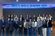 뉴한국방송뉴스통신사 신유철기자 기자 | 제주시는 12일 제주대학교 아라컨벤션홀 대회의실에서 ‘2026년 제26기 제주시 여성대학 입학식’을 개최했다. 이날 입학식은 위탁운영 기관인 제주대학교 김인중 평생교육원장과 입학생 등 48명이 참석한 가운데 진행됐다. 제주시 여성대학은 급변하는 사회 변화에 부응하고 여성의 잠재 역량을 키울 수 있도록 다양한 분야의 교육과정을 지원해 지역사회 공동체 리더로 성장할 기회를 제공하고 있다. 학사 운영은 3월 12일 개강을 시작으로 매주 목요일 오후 7시부터 2시간씩 교육이 진행되며, 12월 3일까지 총 29주 과정으로 운영된다. 주요 강좌는 ▲자기계발 ▲경제 ▲인문 ▲리더십 ▲법률 ▲젠더역량 ▲자치활동 ▲현장체험 등으로 구성되며, 매주 각 분야 전문강사를 초빙해 강의와 프로그램을 진행한다. 한편, 제주시 여성대학은 1999년도 처음 개설된 이후 지난해까지 1,750명의 수료생을 배출했다. 안진숙 여성가족과장은 “여성의 사회참여가 늘어나면서 배움에 대한 관심도 높아지고 있다”며, “앞으로도 여성대학의 내실 있는 교육사업 추진을 위해 노력하겠