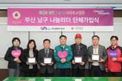 뉴한국방송뉴스통신사 신유철기자 기자 | 부산 남구의 나눔 문화 확산을 이끌 새로운 ‘남구 나눔리더’ 4인이 지난 12월 8일 탄생했다. 이날 가입식에는 대연4동 새마을문고 회장 전정희(70호), 대연4동 지역사회보장협의체 前위원장 주영식(73호), 용호4동 주민자치위원회 위원장 김동식(71호), 사무국장 임용한(72호) 등 지역을 대표해 꾸준히 봉사해 온 주민 인사들이 참석했다 이들은 각 동에서 지역 발전과 이웃 돌봄에 앞장서 왔으며, 개인 고액 기부를 통해 나눔리더로서의 책임과 실천을 이어가겠다는 뜻을 밝혔다. 부산사회복지공동모금회 박선욱 사무처장은 “지역 공동체를 위해 헌신해 오신 주민 대표 네 분이 나눔리더로 함께해 더욱 든든하다”며 “기탁해주신 성금은 지역 내 도움이 꼭 필요한 곳에 투명하고 책임감 있게 사용하겠다”고 말했다. 오은택 남구청장은 “활동하는 동은 다르지만, 지역과 이웃을 향한 나눔리더들의 마음은 하나”라며 “이 소중한 뜻이 필요한 곳에 온전히 전달될 수 있도록 행정에서도 최선을 다하겠다”고 밝혔다. 한편, 나눔리더는 사회복지공동모금회의 개인 기부 프로그램으로, 1년