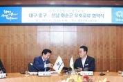 뉴한국방송뉴스통신사 신다은기자 기자 | 화순군은 지난 10월 10일 경기도 용인특례시와 자매결연을 체결한 데 이어 10월 29일 대구광역시 중구와 상호 협력과 공동 발전을 위한 우호교류 협약식을 개최했다고 밝혔다. 이번 협약은 두 지역이 보유한 풍부한 인프라를 기반으로 활발한 교류를 추진해 생활 인구 확대와 지역경제 활성화, 지방 소멸 위기 공동 대응을 도모하기 위해 마련됐다. 이날 협약식에는 구복규 화순군수와 류규하 대구 중구청장, 오형열 화순군의회 의장, 김동현 대구중구의회 의장을 비롯한 주민자치회, 새마을회 대표 등 민관이 함께 참석하여 그 의미를 더했다. “함께 새롭게! 더 행복하게!”를 주제로 진행된 협약식에서 두 지자체는 문화·관광·체육·경제·교육·행정 등 다양한 분야에서 상호 교류와 협력을 추진하기로 했다. 특히 대표 축제 교차 홍보 및 상호 방문 등 실질적이고 지속 가능한 교류사업을 발굴해 나아갈 예정이다. 우호교류 협약을 기념해 화순군은 지역 대표 특산품인 샤인머스켓과 불미나리즙을, 대구 중구는 국가 무형유산인 단청장 보유자가 제작한 단청 공예품과 약령시에서 생산한 약령황제단을 선