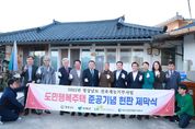 뉴한국방송뉴스통신사 신유철기자 기자 | 경상남도는 29일 산청군 신등면에서 제36호 도민행복주택 준공식을 열었다. 이번에 준공한 제36호 도민행복주택은 초등학생 손자 2명을 돌보는 조손가정을 위해 지어졌다. 누수 지붕을 수리하고 방·거실·화장실의 낡은 마감재를 교체했으며, 화장실에는 샤워 시설을 새로 설치해 편안하고 안전한 주거환경을 조성했다. 특히, 이번 공사는 덕진종합건설㈜의 전액 기부로 진행됐다. 김성은 대표는 “작은 나눔이 어려운 이웃의 삶에 보탬이 된다는 사실에 큰 보람을 느낀다”며 “도민을 위한 주거복지 나눔 활동을 이어가겠다”고 전했다. 도민행복주택은 저소득층, 조손·한부모·다문화 가정 등 생활이 어려운 가구를 대상으로, 도내 건설업체와 건축사의 재능기부와 LH 경남지역본부의 물품 지원을 통해 주거환경을 개선하는 경남형 주거복지사업이다. 도는 2013년부터 전국 최초로 민관이 함께 매년 2~3가구에 새 보금자리를 제공해 왔으며, 이를 통해 따뜻한 연대와 나눔의 가치를 다음 세대에 전하고 있다. 박명균 행정부지사는 “도민행복주택 지원사업에 참여해 준 덕진종합건설(주)와 LH