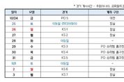 뉴한국방송뉴스통신사 신유철기자 기자 | 삼성 라이온즈와 한화 이글스의 2025 신한 SOL뱅크 KBO 플레이오프 5차전이 10월 24일(금)에 개최된다. 따라서 포스트시즌 각 시리즈 간 최소 1일의 이동일이 확보되어야 하는 규정에 의거, 이후에 예정된 한국시리즈의 모든 일정이 하루씩 늦춰진다. 이에 따라 한국시리즈 미디어데이는 10월 25일(토), 한국시리즈는 1차전은 10월 26일(일)에 개최될 예정이다. [뉴스출처 : KBO]