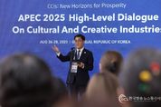 뉴한국방송뉴스통신사 권영분기자 기자 | 문화체육관광부는 8월 26일, 경주에서 열린 ‘에이펙(APEC) 문화산업고위급대화’ 환영만찬을 성공적으로 개최했다고 밝혔다. 최휘영 장관이 의장으로서 주재하는 ‘2025 에이펙 문화산업고위급대화 본회의(8. 27.)에 앞서 열린 이번 만찬에서는 21개 회원경제체 장·차관급 대표단과 민간 연사, 문화산업계 기업인 등 130여 명이 참석해 한국 문화산업의 성과와 미래 비전을 함께 나눴다. 특히 애니메이션 '케이팝 데몬 헌터스'의 까치호랑이 배지 등 국립박물관문화재단의 기념품인 ‘뮷즈’ 40여 종을 전시해 각국 장관과 대표단의 큰 관심을 모았다. ‘뮷즈’를 매개로 자연스럽게 대화를 나누는 참석자들의 모습은 문화강국으로서 한국의 면모를 다시 한번 확인할 수 있게 했다. 최휘영 장관은 환영사를 통해 문화창조산업의 가능성을 강조했다. 나아가 만찬 행사에 자리해 준 한국 문화콘텐츠를 이끄는 대표 기업인들, 제이와이피(JYP) 엔터테인먼트 박진영 창의성총괄책임자(CCO), 제이와이피(JYP) 엔터테인먼트 정욱 대표이사, 와이지(YG)엔터테인먼트양민석 대표이사, 하이브 이재상 대표(CEO), 에스