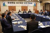 뉴한국방송뉴스통신사 권영분기자 기자 | 문화체육관광부 최휘영 장관은 9월 1일, 켄싱턴호텔 여의도(서울 영등포구)에서 음악, 연극, 무용, 문학, 미술 등 예술 분야별 협회‧단체장들을 만나 예술계 현장 목소리를 청취하고 지속 가능한 발전 방향 및 지원 방안을 논의했다. 음악, 연극, 무용, 문학, 미술 등 분야별 대표들과 예술계 발전 방안 논의 정부와 예술계 간 소통과 협력을 강화하기 위해 마련한 이번 간담회에는 (사)한국민족예술단체총연합회 김평수 이사장, 문화연대 이동연 공동대표를 포함해 ▴음악 분야에서는 (사)한국음악협회 대표인 이철구 이사장과 (사)국악진흥회 임웅수 부이사장이, ▴연극 분야에서는 (사)한국연극배우협회 임대일 이사장이, ▴무용 분야에서는 (사)한국현대무용협회 김형남 이사장과 (사)한국무용협회 조남규 이사장이, ▴문학 분야에서는 (사)한국작가회의 강형철 이사장과 (사)한국문학관협회 김종회 회장, (사)한국문인협회 김호운 이사장이, ▴미술 분야에서는 (사)한국조각가협회 권치규 이사장(분야별 성명 가나다순)이 참석했다. 참석자들은 예술인들의 창작 환경 개선, 지역 예술생태계 활성화, 국제교류