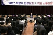 뉴한국방송뉴스통신사 신유철기자 기자 | 고양특례시는 지난 26일 덕양구청 대회의실에서 ‘2026년 덕양구 업무보고 및 직원 소통간담회’를 개최했다. 업무보고에는 이동환 고양시장과 주시운 덕양구청장을 비롯해 구청 13개 과·21개 동행정복지센터의 부서장, 8·9급 저연차 공무원 등 100여 명의 직원이 참석했다. 2026년 업무보고는 주시운 덕양구청장과 부서장의 보고를 통해 민선8기 덕양구 핵심 성과와 2026년 업무 추진 방향을 간략히 공유하고, 직원들과의 자유로운 토론 시간을 확대해 현장의 목소리를 청취하는 데 중점을 뒀다. 이날 부서별 업무보고와 관련해 이동환 시장은 ▲덕양구를 대표하는 창릉천 유채꽃·코스모스 축제의 성공적 개최를 위한 주관 부서와 행신2동 행정복지센터의 적극적인 협조 ▲지적재조사 사업 등 시민 불편 해소를 위한 주요 사업의 속도감 있는 추진을 당부했다. 특히 20~30대 직원들과 격의 없이 소통하는 자유토론 시간이 눈길을 끌었다. CES 2026에서 고양시에 도입하고 싶다고 생각한 기술 분야, 전 세계적인 주목을 받은 ‘고양콘’에 대한 궁금증 등 다양한 주제로 활발한 의견 교환