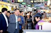 뉴한국방송뉴스통신사 신유철기자 기자 | 김경일 파주시장은 지난 1일 추석 명절을 앞두고 금촌전통시장과 문산자유시장을 찾아 상인들과 시민들을 만나며 따뜻한 명절 분위기를 조성했다고 밝혔다. 김 시장은 지역화폐(파주페이)로 각종 물품을 구매하며 상인들을 격려했으며, 지역경제 활성화를 위한 민생회복 소비쿠폰 2차 지급에 시민 모두가 빠짐없이 신청해 줄 것과 9월 15일부터 무제한 할인쿠폰을 제공하고 있는 공공배달 앱 ‘배달특급’의 적극적인 이용을 부탁하며 지역경제 현장의 목소리를 청취했다. 김경일 파주시장은 “어려운 경기 여건 속에서도 항상 같은 자리에서 꿋꿋이 일하고 있는 소상공인들이야말로 지역경제의 버팀목”이라며 “소비 위축과 고물가·고금리로 어려움을 겪는 소상공인을 돕고 지역경제 활성화를 위해 최선을 다하겠다”라고 말했다. 파주시는 장기화된 경기 침체 속 민생경제 안정을 위해 올해 전국 최대 규모인 3,189억 원의 파주페이를 발행했다. 특히 올해 설(2월)과 가정의 달(5월)에 이어 추석이 있는 10월에도 파주페이 충전한도를 최대 100만 원으로 확대해 시민의 가계 부담 경감에 힘쓰고 있다. [뉴스출처 :