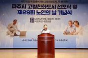 뉴한국방송뉴스통신사 신유철기자 기자 | 파주시는 지난 14일 파주시민회관 대공연장에서 ‘제29회 노인의 날 기념행사 및 세계보건기구(WHO) 인증 고령친화도시 선포식’을 성황리에 개최하고, 고령사회에 대응하는 파주시 복지정책 방향과 세대 간 공감의 문화를 확산하기 위한 뜻깊은 자리를 마련했다. 이번 행사는 김경일 파주시장을 비롯해 박대성 파주시의회 의장, 경기도 및 파주시의원, 노인 관련 유관기관장 등 400여 명이 참석해 시민 모두가 행복한 고령친화도시를 만들어가겠다는 의지를 다졌다. 이날 행사에서는 노인복지 유공자 54명에 대한 표창 수여와 함께 고령친화도시 선포, 축하공연 등이 이어져 풍성한 볼거리를 선사했다. 김경일 파주시장은 “파주시는 세계보건기구(WHO)로부터 고령친화도시로 공식 인증받은 것을 계기로, 어르신이 존중받고 시민 모두가 행복한 도시를 만들겠다”라며 “앞으로도 노인복지 증진과 세대 통합을 위한 다양한 정책 실현을 통해 파주시민 모두가 ‘파주에 살기를 참 잘했다’라고 말할 수 있도록 최선을 다하겠다”라고 밝혔다. 향후 파주시는 관내 노인 관련 유관단체와 적극 협력하여 어르신의 목