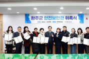 뉴한국방송뉴스통신사 김성의 기자 | 완주군이 ‘2026년 완주군 안전보안관 위촉식’을 열고 신규 안전보안관 12명에게 위촉장을 수여했다. 안전보안관은 안전신문고를 활용해 지역 내 안전 위험요인을 선제적으로 발굴·신고하고, 각종 안전문화운동과 캠페인에 참여하는 등 안전한 지역사회 조성을 위해 2018년부터 운영되고 있다. 현재 34명이 활동 중이며, 지역사회 전반의 안전의식 제고와 안전문화 확산을 위해 이번에 12명을 추가로 위촉했다. 신규 안전보안관들은 앞으로 생활 속 안전 위험요소를 발굴하고, 군민과 행정을 잇는 안전 파수꾼 역할을 수행하게 된다. 특히 주민 눈높이에서 위험요소를 발견하고 개선을 유도함으로써 현장 중심의 실질적인 안전관리 체계 구축에 기여하고 있다. 이날 위촉식에서는 안전보안관의 역할과 활동 방향을 공유하고, 안전문화 확산을 위한 결의의 시간도 함께 마련됐다. 유희태 완주군수는 신규 안전보안관들에게 위촉장을 전달하며 “완주군은 인구 10만 명을 달성하고 문화선도산단 추진 등으로 앞으로 더욱 성장할 것으로 기대된다”며 “도시가 성장할수록 안전에 대한 철저하고