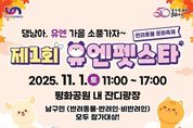 뉴한국방송뉴스통신사 신유철기자 기자 | 부산광역시 남구는 오는 11월 1일, 구 개청 50주년을 기념해 평화공원 내 잔디광장에서 '제1회 유엔펫스타(Pet Star, 반려동물 문화축제'를 개최한다고 밝혔다. 이번 축제는 반려동물과 반려인, 그리고 비반려인 모두가 함께 어울리며 반려 문화에 대한 인식을 개선하고, 올바른 반려동물 문화 정착을 도모하기 위해 마련됐다. 행사는 11시부터 오후 5시까지 진행되며, 남구민 누구나 참여할 수 있는 다채로운 프로그램이 운영된다. 개막식을 시작으로 반려동물과 함께하는 △반려동물과 함께하는 플로깅 ‘유엔펫로깅’(사전등록 필요) △반려동물 문화교실 ‘펫티켓토크’△반려동물 퀴즈대결 ‘댕퀴즈 온더유엔’ △어질리티 경주 및 기다려 대회로 구성된 ‘댕냥이 가을운동회’ 등이 펼쳐질 예정이다. 또한 행사장 내에는 포토존, 유엔펫 상담소(댕냥병원 · 동물등록), 펫타로 체험, 양말목 키링·허브볼 만들기 체험부스 등 가족 단위 참가자들이 즐길 수 있는 다양한 체험 공간도 마련된다. 참여자는 반려동물의 목줄을 반드시 착용하고 배변 봉투를 지참해야 하며, 주차 공간이 협소