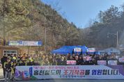 뉴한국방송뉴스통신사 양호선기자 기자 | 홍천읍 이장협의회(회장 신교인)는 2026년 1월 28일 오전 11시 30분, 남산 입구에서 산불 없는 안전한 한 해를 기원하는 산불 예방 기원 산신제를 봉행했다. 이날 행사에서는 용문-홍천철도 조기 착공을 함께 기원했다. 이번 산신제는 홍천읍 이장협의회 주관으로 열렸으며, 이인식 홍천읍장과 직원, 홍천읍 이장, 남녀 의용소방대(대장 신상욱, 이미영) 등 40여 명이 참석해 산불 예방과 지역 주민의 안녕을 한마음으로 기원했다. 또한 참석자들은 용문-홍천 광역철도 예비타당성조사 통과를 함께 축하했으며, 사업이 조기에 착공될 수 있도록 한뜻으로 염원했다. 산신제는 예로부터 자연재해를 막고 마을의 평안을 비는 전통 제례로 전해져 왔으며, 이날 행사는 엄숙한 분위기 속에서 진행됐다. 홍천읍 이장협의회는 산불 취약 시기를 앞두고 주민 안전 의식을 다지는 자리로 의미를 더했다고 밝혔다. 신교인 홍천읍 이장협의회장은 “건조한 날씨로 산불 위험이 커지는 시기인 만큼, 산신제를 통해 산불 예방의 중요성을 다시 한번 되새기고자 했다”라며, “앞으로도 주