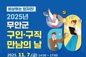 뉴한국방송뉴스통신사 신다은기자 기자 | 전남 무안군은 오는 11월 7일 목포대학교 남악캠퍼스 글로컬스타트업센터 컨벤션홀에서 지역 기업의 인력난 해소와 구직자의 취업확대를 위해 『2025년 무안군 구인·구직 만남의 날』을 개최한다. 이번 행사는 전남 서남권 15개 기업이 50여 명을 채용할 예정으로 참여 기업은 제조·서비스·복지 등 다양한 업종으로 구성돼 기업설명회와 함께 직접 현장면접을 진행한다. 또한 행사장에서는 전남중소기업일자리경제진흥원, 고용복지플러스센터 등 유관기관이 참여해 맞춤형 취업상담과 이력서 컨설팅을 진행하며 증명사진 무료 촬영, 이력서 출력 서비스 등 다양한 부대행사와 함께 구직자에게 실질적인 도움을 제공할 예정이다. 군은 현재 행사 참여를 희망하는 구직자를 모집 중이며, 참여를 원할 시 무안군청 일자리팀또는 무안고용복지센터로 사전 신청하거나 행사 당일 현장 접수를 통해 참여할 수 있다. 이혜향 미래성장과장은 “이번 행사는 구직자에게는 일자리 기회를, 기업에는 맞춤형 인재 채용의 장을 제공하는 의미 있는 자리”라며, “앞으로도 군민이 체감할 수 있는 현장 중심의 일자리 정책을 지속적