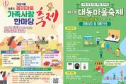 뉴한국방송뉴스통신사 신태공 기자 | 대전 동구는 오는 18일 구 대표 마을 축제인 ‘제4회 가양1동 봉이마을 가족사랑 한마당 축제’와 ‘제7회 대동 마을축제’를 잇따라 개최한다고 15일 밝혔다. 먼저, 가양1동 자생단체협의회(회장 오경진) 주관으로 얼리는 ‘제4회 봉이마을 가족사랑 한마당 축제’가 오전 11시부터 가양초 운동장에서 진행된다. 올해로 4회를 맞은 이번 축제는 주민 모두가 함께 즐기고 소통하는 지역 화합의 장으로 꾸며지며, 식전 풍물‧사물놀이 공연을 시작으로 ▲대전아트필하모닉오케스트라 금관 앙상블 ▲버블쇼 ▲댄스 및 색소폰 공연 ▲난타공연 등 다채로운 무대가 펼쳐진다. 또한, 주민이 직접 참여하는 가족 장기자랑과 제기차기·투호 결승전, 먹거리 장터, 도자기 공방, 아로마 체험 등 체험과 즐길거리가 어우러진 프로그램이 마련돼 온 가족이 함께 즐길 수 있다. 이어, 오후 1시부터는 대동성당 앞 대동천변에서 대동골목축제추진위원회(위원장 신영국) 주관으로 ‘제7회 대동 마을축제’가 열린다. ‘대동단결 주민 화합 한마당’을 주제로 진행되는 이번 축제는 개막식과 기념식을 시작으로 ▲대