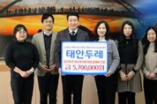 뉴한국방송뉴스통신사 신태공 기자 | 충청남도태안교육지원청 소속 일반직공무원 봉사동아리 ‘태안두레’는 지난 12일 지재규 교육장을 찾아 지역 내 어려운 학생들을 위한 성금 570만 원을 전달했다. ‘태안두레’는 관내 일반직공무원 50여 명이 참여하는 봉사동아리로, 매월 자발적으로 모은 회비를 바탕으로 다양한 나눔 활동을 이어오고 있다. 특히 매년 저소득층 학을 대상으로 생계비를 지원하는 등 실질적인 도움을 제공하며 지역사회에서 꾸준히 신뢰를 쌓아왔다. 이번에 전달된 성금은 방학 중 중식비와 겨울철 난방비 등 학생들의 생활 안정을 위해 사용될 예정으로, 도움이 필요한 가정에 큰 힘이 될 것으로 기대된다. 지재규 교육장은“‘태안두레’의 꾸준한 나눔이 지역 학생들에게 든든한 응원이 되고 있다”며 “전달받은 성금을 학생들의 복지를 위해 투명하게 사용하겠다”고 말했다. 『태안두레』는 앞으로도 지역 학생과 어려운 이웃을 위한 연대와 실천을 이어가며, 공직자로서의 사회적 책임을 지속적으로 실천해 나갈 계획이다. [뉴스출처 : 충청남도태안교육지원청]