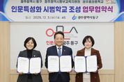 뉴한국방송뉴스통신사 김성의 기자 | 광주 동구는 2026년 새롭게 기획한 인문특성화 학교 추진을 위해 지난 3일 광주동부교육지원청, 광주충장중학교와 ‘인문 특성화 시범학교 운영을 위한 업무협약’을 체결하고 지역 인문교육 활성화를 위한 협력 기반을 구축했다고 밝혔다. 이번 협약은 ‘인문도시 광주동구’ 정책을 교육 분야로 확장하고 청소년 인문소양을 체계적으로 강화하기 위한 사업의 일환이다. 동구는 관내 학교, 동부교육지원청과 학생 규모, 혁신학교 운영, 교육과정 자율성 등을 종합 검토했고, 그 결과 충장중학교가 첫 시범 중학교로 선정됐다. 구는 향후 시범운영 성과를 바탕으로 타 학교로 단계적 확대도 추진할 계획이다. 이날 협약에 따라 충장중학교는 ‘동구 올해의 책과 함께하는 독서 캠프’, ‘청소년 인문 강좌’, ‘학생·학부모 국내 문학 기행’, ‘해외 문학 기행’ 등 다양한 인문 체험 중심 프로그램을 교육과정과 연계해 운영하게 된다. 이를 통해 학생들의 정서적 성장과 인문 소양이 강화될 뿐 아니라, 학교의 특성화 모델 구축과 교육 경쟁력 제고에도 도움이 될 것으로 기대된다. 동구 관계자는 “이번 협약은 지역 인문교