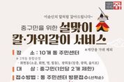 뉴한국방송뉴스통신사 신유철기자 기자 | 서울 중구가 설 명절을 앞두고 오는 2월 5일부터 11일까지 동 주민센터를 순회하며 ‘찾아가는 칼·가위갈이 서비스’를 운영한다. 명절 음식 준비로 칼과 가위 사용이 잦아지는 시기에 맞춰, 고향사랑기금으로 마련한 생활밀착형 서비스다. 중구민이라면 누구나 이용료‘100원’만 내면, 칼과 주방 가위를 합쳐 1인당 최대 두 자루까지 갈 수 있다. 칼갈이를 이용하려면, 2월 4일까지 동 주민센터로 방문해서 신청해야 한다. 하루 최대 120자루까지 접수받는 만큼, 서둘러 신청하는 것이 좋다. 칼갈이 서비스는 △5일 회현동·청구동 △6일 신당5동·중림동 △9일 다산동·동화동 △10일 약수동·황학동 △11일 동화동·중림동 주민센터에서 차례대로 운영한다. 운영시간은 오후 1시부터 6시까지이며, 광희동은 오후12시부터 5시까지 운영한다. 소공동, 명동, 필동, 장충동, 을지로동 등 5개 동은 인근 동 주민센터와 통합 운영한다. 소공동, 명동, 필동 주민은 회현동 주민센터를, 장충동, 을지로동 주민은 광희동 주민센터를 이용하면 된다. 구는 통합운영하는 5개 동 주민들의 불편을 덜