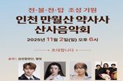 뉴한국방송뉴스통신사 신유철기자 기자 | 인천광역시는 오는 11월 2일 오후 6시, 남동구 간석동 만월산 약사사에서 ‘만월산 약사사 산사음악회’를 개최한다고 밝혔다. 이번 음악회는 인천시가 후원하고 인천불교총연합회가 주최, 약사사가 주관하는 가을 대표 문화행사로, 도심 속 사찰을 문화무대로 확장해 시민이 함께 즐길 수 있는 열린 힐링 축제로 기획됐다. 1932년 창건된 약사사는 대한불교화엄종의 총본산으로, 도심 속에서도 고요함과 전통미를 간직한 인천의 대표 사찰이다. 이번 공연은 ‘종교를 넘어 시민 모두가 행복을 나누는 시간’을 주제로, 불교문화와 대중음악이 함께 어우러지는 색다른 감동의 무대가 될 전망이다. 약사사 금강합창단의 찬불가 무대로 시작해 불교적 선율 속에 마음의 평안을 전한다. 이어 퓨전국악그룹‘이상’이 전통 국악과 현대적 리듬을 결합한 색다른 무대를 선보이며, 색다른 음악적 감성을 선사한다. 또한 가수 박서진, 나영, 정슬, 별빛 등 대중에게 사랑받는 초대가수들이 트로트와 감성가요를 통해 남녀노소가 함께 즐길 수 있는 다채로운 무대를 펼칠 예정이다. 윤도영 시