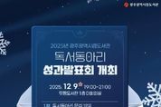 뉴한국방송뉴스통신사 김성의 기자 | 광주광역시립도서관은 오는 9일 무등도서관 대회의실에서 ‘2025년 시립도서관 독서동아리 성과발표회’를 개최한다. 이번 발표회는 시립도서관 독서동아리들의 성과를 공유하고 지역 문학활동을 활성화하기 위해 마련했다. 시립도서관 소속 4개 도서관(무등·사직·산수·디지털정보)에는 현재 31개 동아리가 활동 중이다. 회원들은 글쓰기, 독서토론하기, 문학 강의 듣기 등 동아리별 목표를 정해 주기적으로 교류하고 있다. 이날 발표회장 입구에는 시립도서관 독서동아리가 올해 발간한 ‘제3회 빛고을 글수다’ 문집을 방문객이 열람할 수 있도록 전시한다. ‘빛고을 글수다’ 문집은 지난 2021년부터 격년으로 발간하고 있으며 이번 문집에는 10개 동아리 회원 81명이 집필한 시·소설·수필 등 102편이 수록됐다. 발표회에서는 집필에 참여한 동아리 대표자 10명이 활동 성과와 발간 소감을 공유하고 한강 작가의 노벨상 수상 1주년을 축하한다. 대표자들의 발표 후에는 두 차례의 지역 작가 특강을 진행한다. 정윤천 작가는 ‘시로 만나는 삶의 이야기
