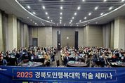 뉴한국방송뉴스통신사 신유철기자 기자 | 경상북도는 29일 안동 그랜드호텔에서 ‘2025 경북도민행복대학 학술 세미나’를 성공적으로 개최했다. 이번 세미나는 명예도민 석·박사과정 재학생 및 캠퍼스 관계자 등 160여 명이 참석해 도민 주도형 연구 성과를 공유하고, 평생학습을 통한 지역문제 해결 가능성을 논의하는 장이었다. 세미나는‘함께하는 평생학습: 전환과 상생’이란 특강 주제를 시작으로 명예도민 석사·박사과정 재학생들이 직접 수행한 캠퍼스별 주제 연구와 프로젝트 결과를 발표했다. 순서대로, 동부캠퍼스(석사_선린대학교)가 ‘저출생에 따른 인구 감소 해소 방안’, 서부캠퍼스(석사_경북보건대학교)가 ‘경북의 이민정책과 인구구조 변화’의 연구 자료를 발표했다. 이어, 남부캠퍼스(석사_대경대학교)는 ‘경상북도 노인돌봄 NEW 정책 패러다임’을 제시했으며, 북부캠퍼스(석사_국립경국대학교)는 ‘지역사회 신중년 세대의 인구 유출 방지를 위한 인구 유입·정착 방안’을 공유해 눈길을 끌었다. 또, 동남부캠퍼스(박사_대구대학교)가 ‘사회과학 이론을 접목한 능동과 참여의 평생교육-마을만들기 프로젝트 학습사례