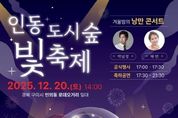 뉴한국방송뉴스통신사 신유철기자 기자 | 구미시는 오는 12월 20일 인동로데오거리 일원에서 청춘의 에너지와 음악이 어우러지는 '2025년 인동도시숲빛축제'를 개최한다. 이번 축제는 젊은 도시로서 도심에 활력을 더하고 겨울철 야외 문화 향유 기회를 넓히기 위해 마련됐다. 행사는 오후 2시 30분부터 밤 9시 30분까지 인동로데오거리 특설무대에서 진행되며, 12월 18일부터 30일까지는 크리스마스 시즌을 맞아 경관조명을 설치해 시민과 방문객을 위한 포토스폿도 운영한다. 오후 2시 30분부터 5시까지는 레크리에이션과 지역 버스킹 밴드 공연, 뮤지컬 갈라쇼 등이 이어져 어린이부터 어른까지 온 가족이 함께 즐길 수 있는 프로그램을 선보인다. 오후 5시부터는 공식행사를 시작으로 레트로 댄스 가수 박남정과 채연의 무대, 서커스 공연, 디제잉까지 다채로운 라이브 공연이 펼쳐져 겨울밤 도심을 열정으로 채울 예정이다. 김장호 구미시장은 “인동도시숲빛축제는 젊은 도시 구미의 활력을 시민과 함께 나누는 자리”라며 “많은 시민과 관광객이 인동로데오거리를 찾아 음악과 빛이 어우러진 겨울 축제를 즐기길 바란다”고